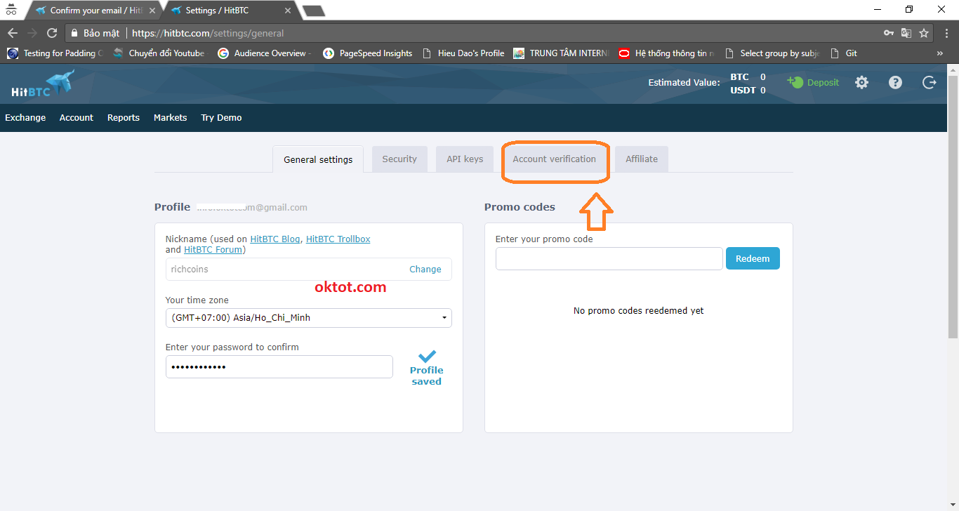oktot-HitBTC-xac-thuc
